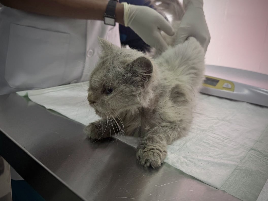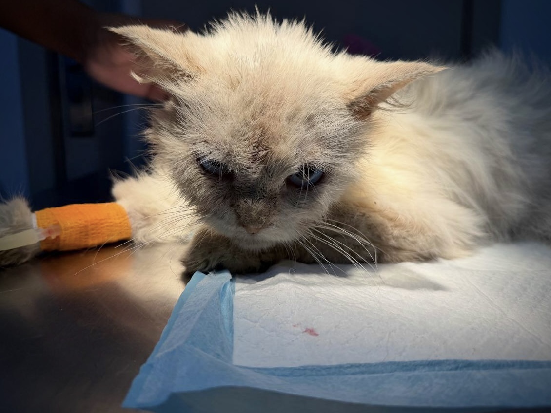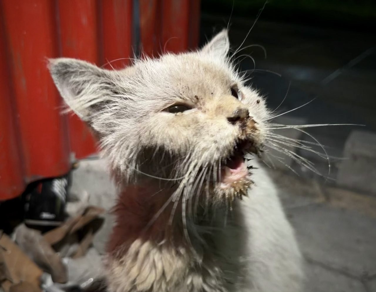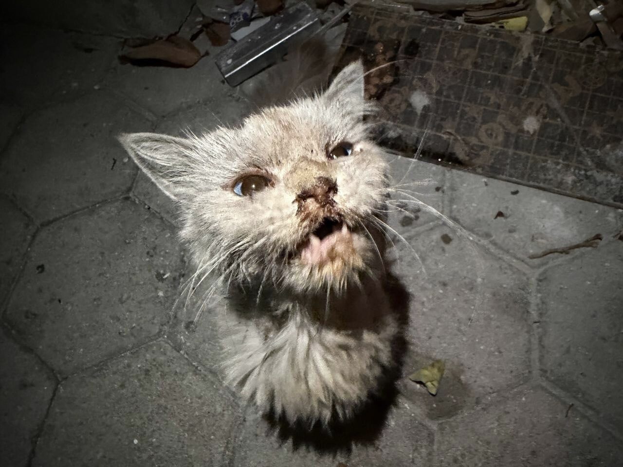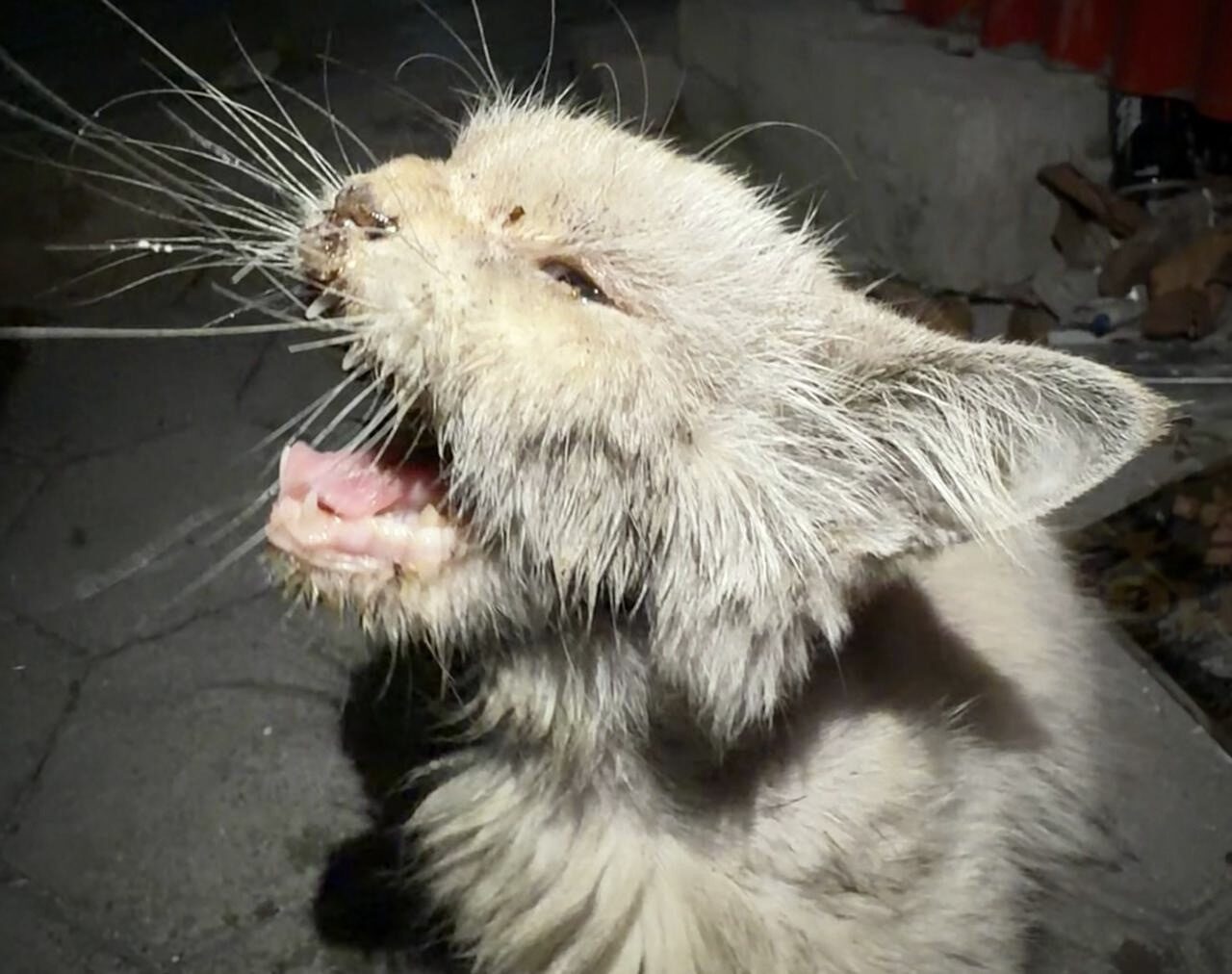 Kotka chce żyć. Nadal walczy. Wciąż próbuje jeść, jednak złamana szczęka jej na to nie pozwala.