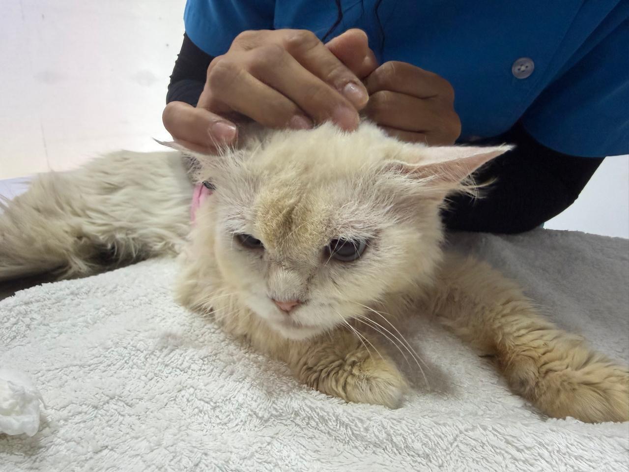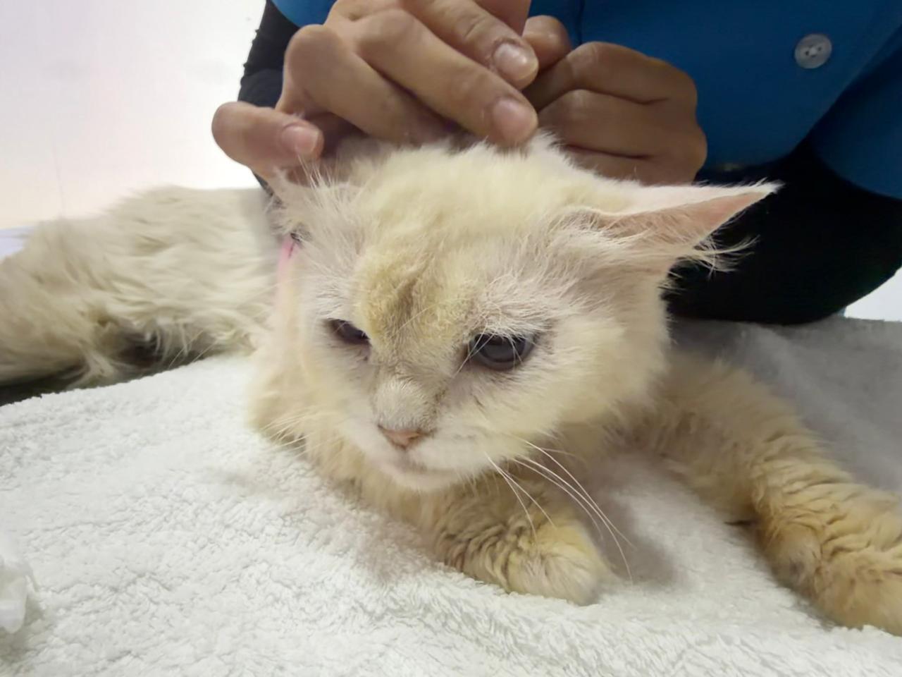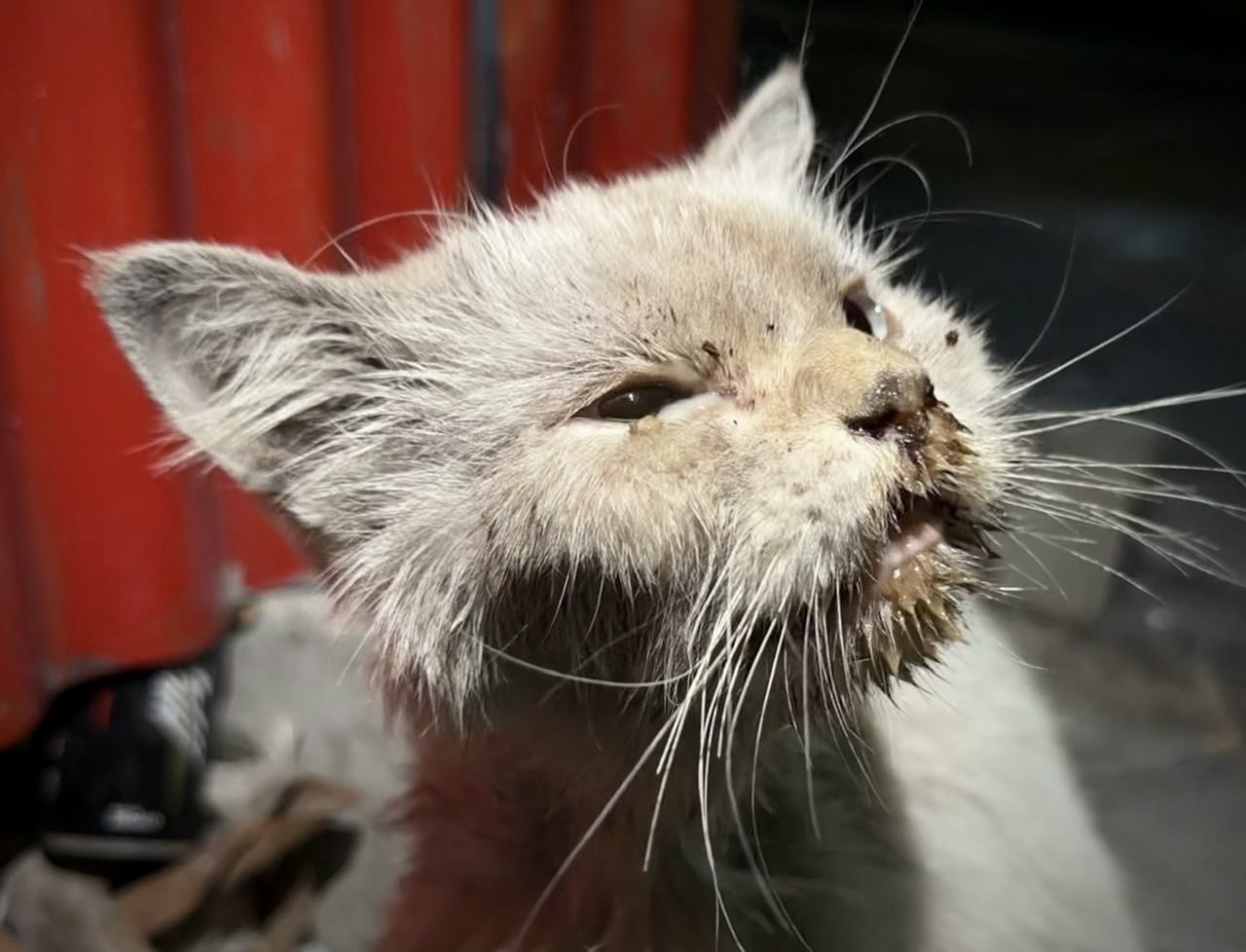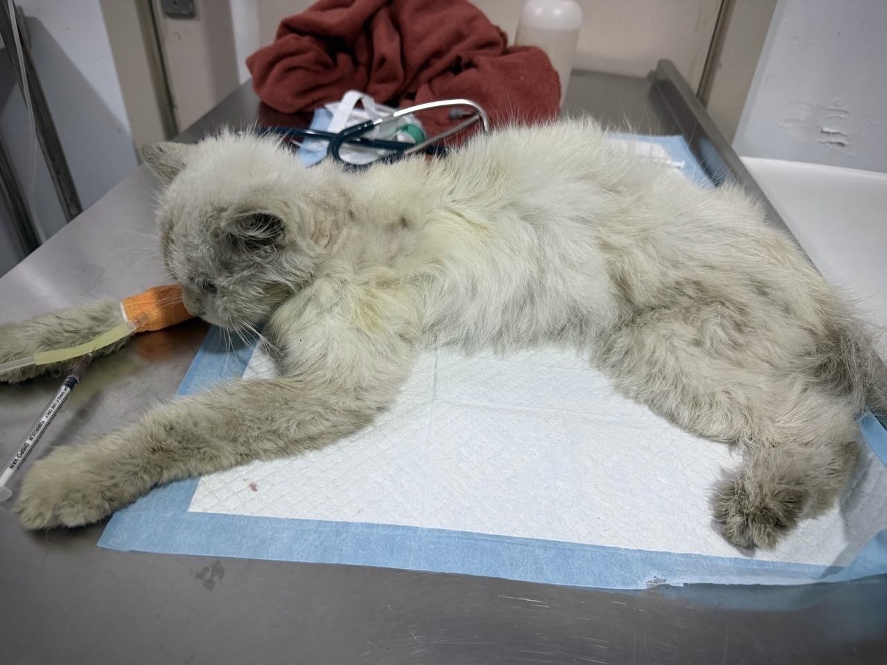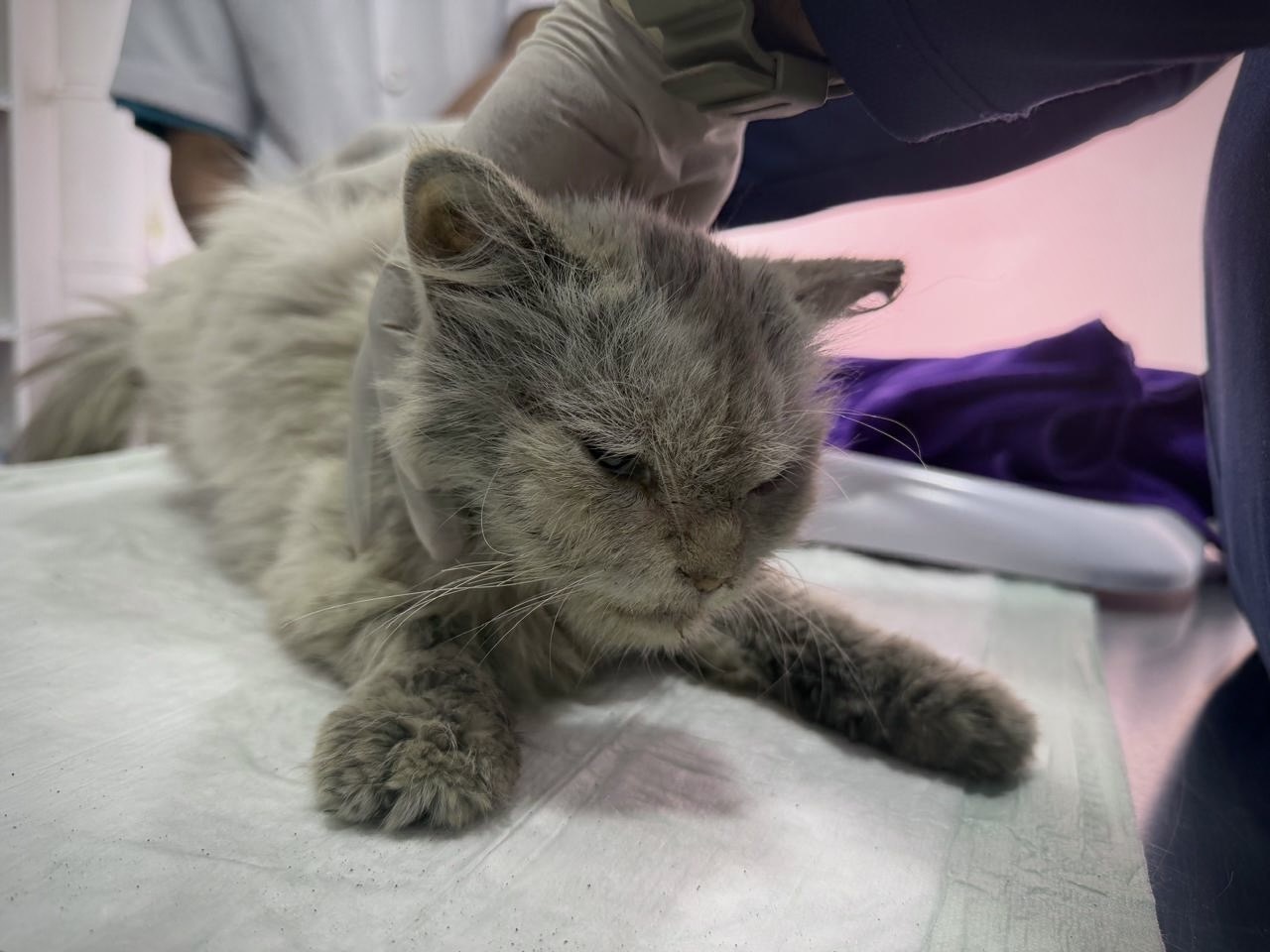 Kotka chce żyć. Nadal walczy. Wciąż próbuje jeść, jednak złamana szczęka jej na to nie pozwala.