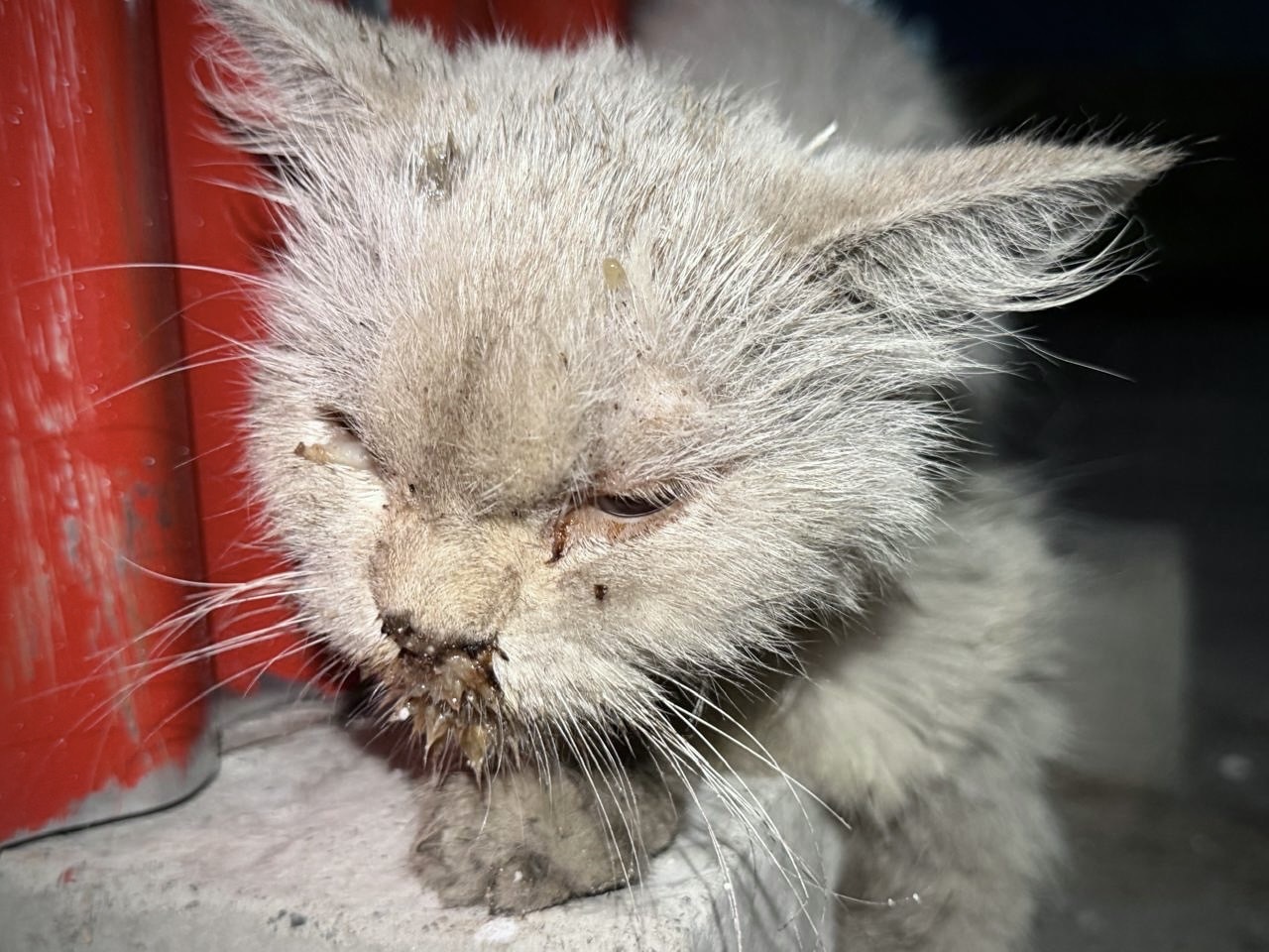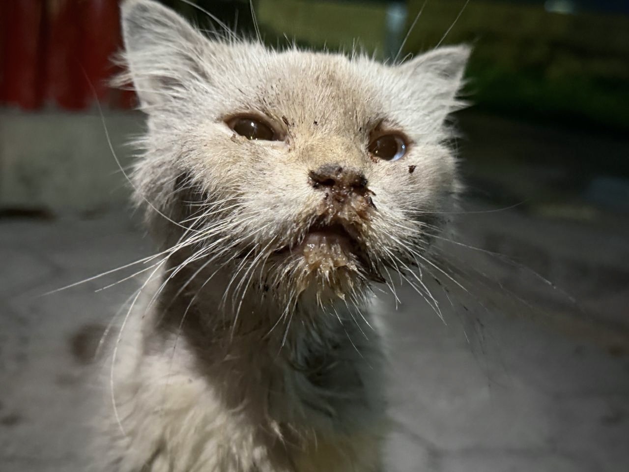 Arielka siedziała na chodniku pod blokiem. Sztywna, napuszona, z brudną matową sierścią. Kiwała się lekko, zupełnie jakby miała się zaraz przewrócić. Oczy, nos, pyszczek – wszystko posklejane gęstą ropą ze strużkami krwi. Dziwnie przekrzywiona szczęka. Dałam Arielce trochę mokrej karmy. Musiała być bardzo głodna, bo od razu rzuciła się na nią łapczywie i próbowała jeść. Ale… okazało się, że nie potrafi. Nie była w stanie ani gryźć, ani nawet utrzymać w pyszczku kawałka miękkiej karmy.