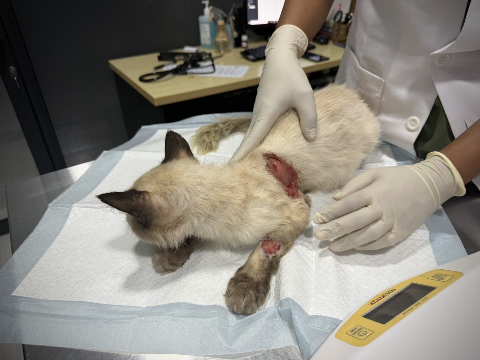 Kofi od rana jest w lecznicy – ma przemywane rany, zmieniany opatrunek i podawane leki. To dla niego dopiero początek. Rany Kofika są rozległe i głębokie, przez co droga do zdrowia będzie długa i ciężka.