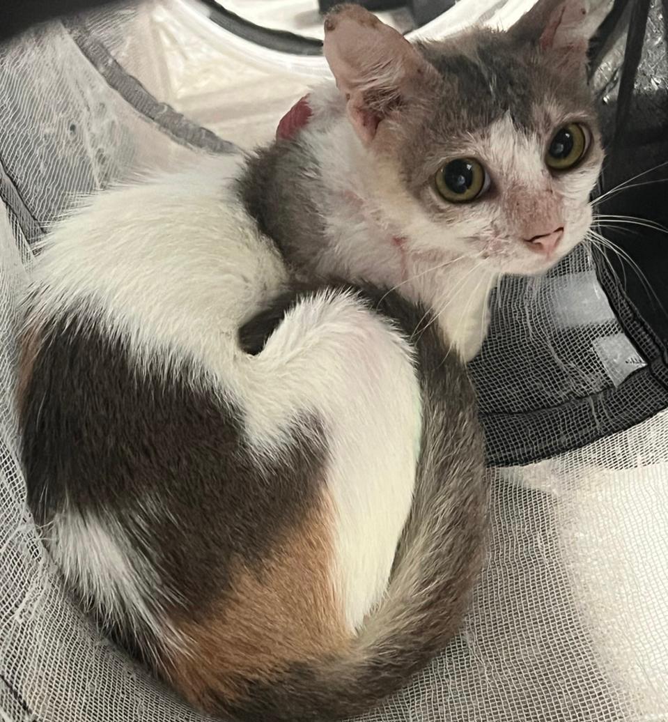W klinice doktor podał koteczce bardzo silne leki przeciwbólowe. Dopiero gdy zaczęły działać, mógł ją zbadać i oczyścić część ran. Potem podał jej steryd i antybiotyk o szerokim spektrum działania miejscowo i dożylnie, żeby zapobiec rozwojowi infekcji bakteryjnej.